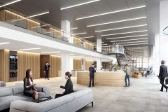 Work has now begun on site at No1 Spinningfields in Manchester on behalf of BAM Construction and in conjunction with Simpson Haugh and Axis Architects. Gariff have been appointed to fit out the main reception atrium to this new 19 storey, 32,000 m², Grade A office building. For Gariff involve striking timber feature wall panelling, bespoke manufactured reception desks and unique fixed upholstered seating. The project value is around £230k and will be completed in just five weeks.