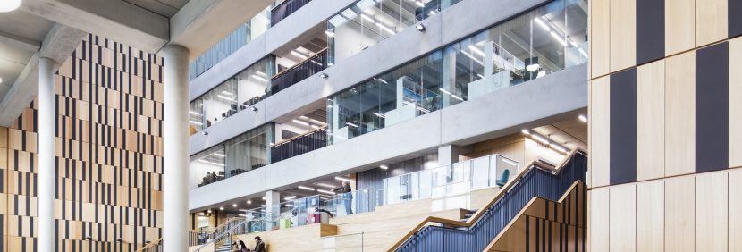 ARCHITECT: Sheppard Robson LOCATION: Birley Fields Campus, Manchester, UK Gariff manufactured and installed in excess of 7000 veneered wood and acoustic fabric panels for the work completed on the atrium at Manchester Metropolitan Universi...